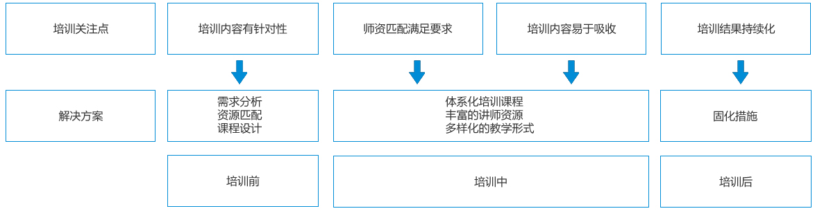 构建流程化、规范化、专业化、科学合理的培训流程,严格把控重点环节,做好过程管理,使培训课程 体系的效果最大化。
